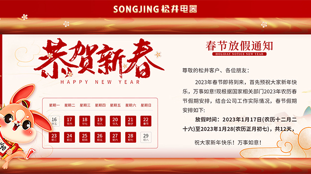 尊敬的松井客戶、各位朋友: 虎振雄風留浩氣,兔迎盛世啟新程。歲杪春臨,華章日新,春節(jié)即將到來,感謝…